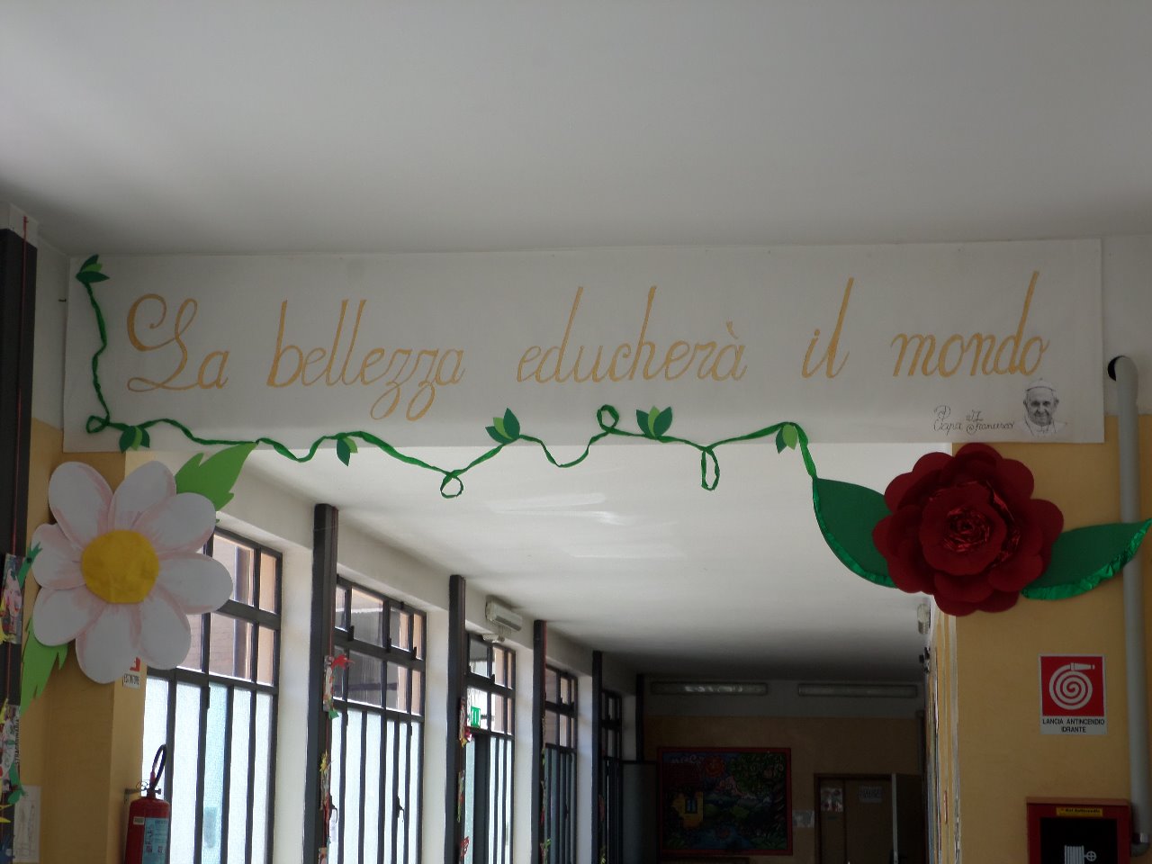 Finalmente il grande giorno è arrivato!Nei corridoi della nostra scuola, rimasti a lungo silenziosi, sono risuonate le voci argentine di amici nuovamente insieme dopo la meritata pausa estiva. Nel corridoio dove sono stati accolti gli adulti, spicca uno striscione con lo slogan "La bellezza educherà il mondo", ispirato al titolo del libro di Papa Francesco. Il titolo del tema dell'accoglienza di quest'anno sarà proprio questo perchè noi insegnanti vogliamo cogliere l'invito del Pontefice portando i nostri piccoli a capire quanto il bello della natura che ci circonda così come il bello dell'arte e quello della collaborazione possono aiutarci a conoscere dando il meglio di noi stessi e a vivere serenamente.